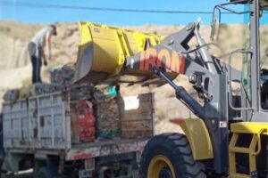 Trabajadores de la Secretaría de Medio Ambiente y Desarrollo Sostenible de la localidad de Los Antiguos, realizaron el traslado de...